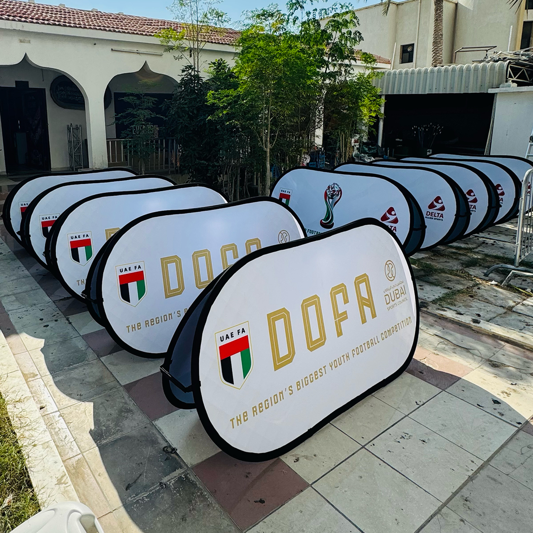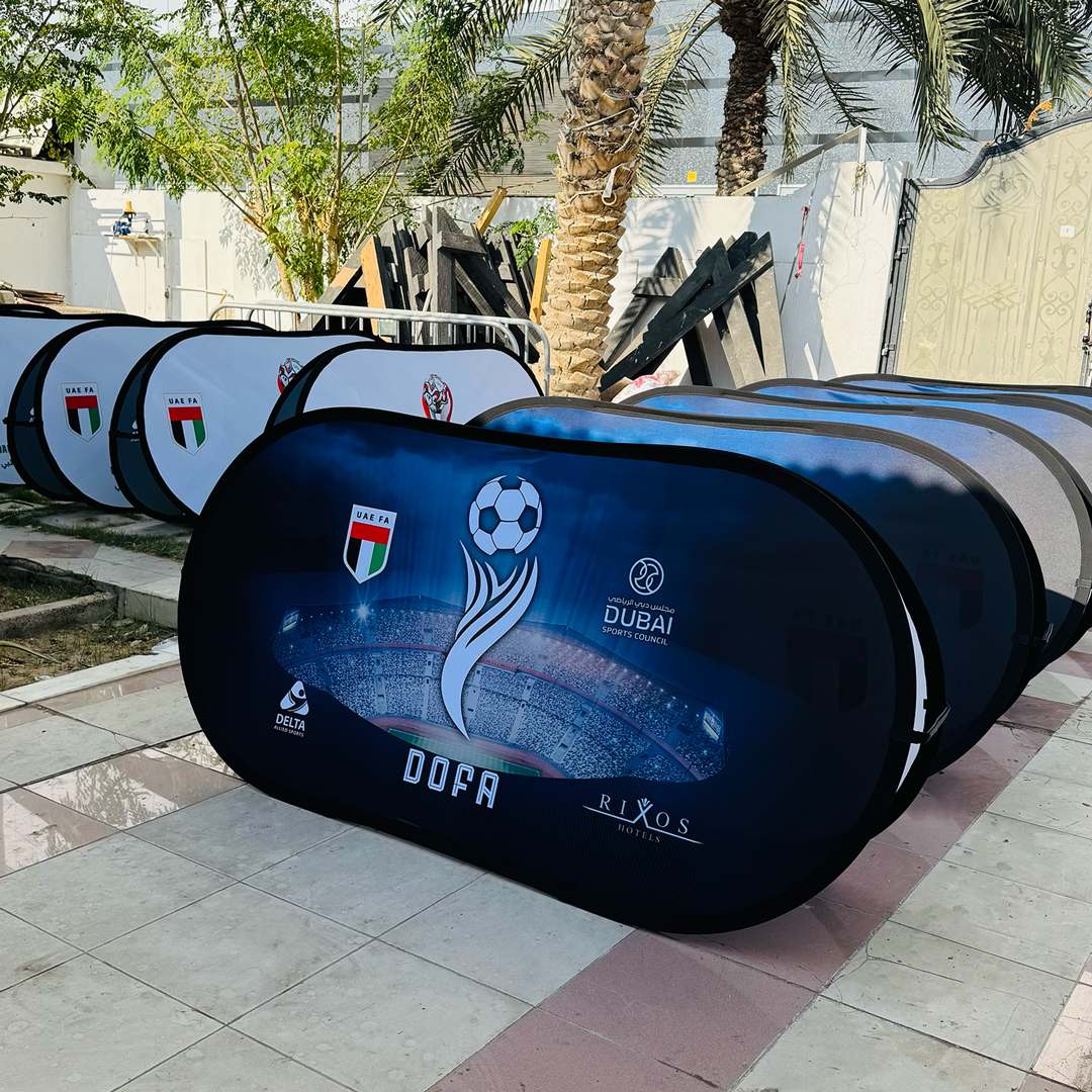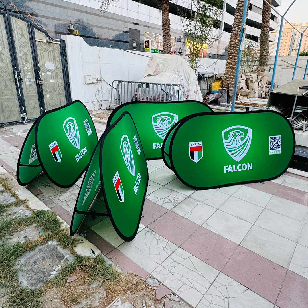 - Weatherproof Dye Sublimation: Graphics are printed using dye sublimation onto peach skin fabric, ensuring vibrant, washable, and weather-resistant visuals ideal for the GCC climate.